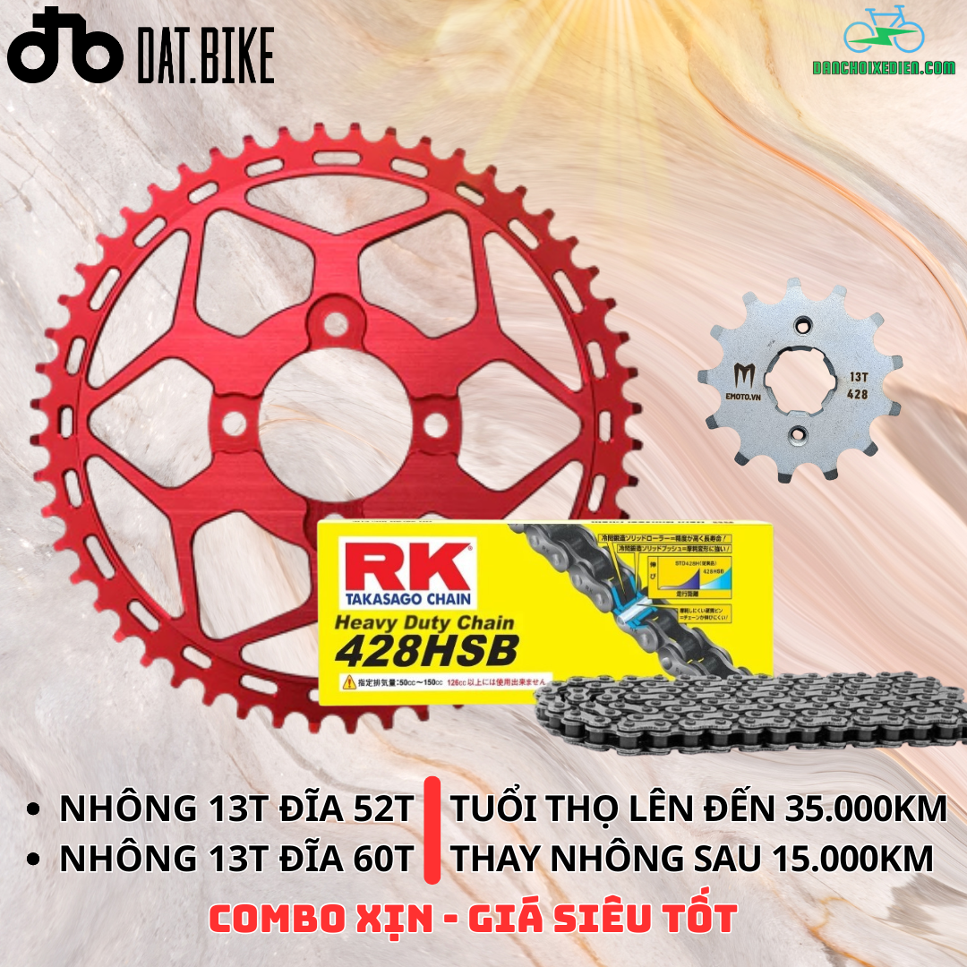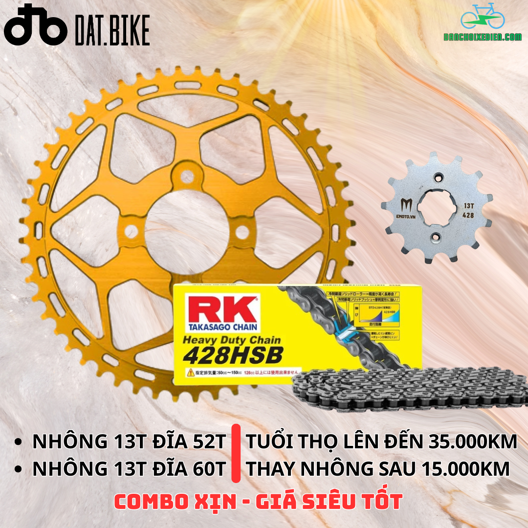 Bạn đang sở hữu một chiếc “chiến mã” Dat.Bike Quantum (S0, S1, S2, hoặc S3) và muốn tìm một bộ nhông sên đĩa (NSD) xứng tầm? Đừng tìm đâu xa! Xin giới thiệu Combo Nhông Sên Đĩa RK “Siêu Xịn” – sự kết hợp hoàn hảo giữa công nghệ Nhật Bản, vật liệu cao cấp và thiết kế tối ưu dành riêng cho dòng xe điện mạnh mẽ của Việt Nam.