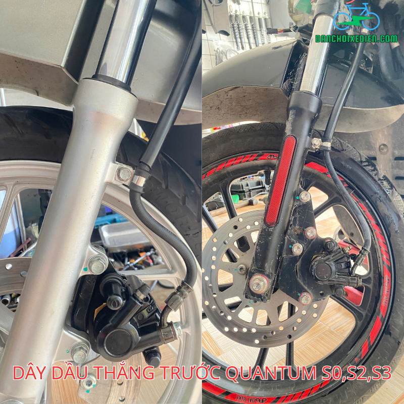 Hệ thống phanh (thắng) là yếu tố an toàn quan trọng nhất trên chiếc xe máy điện hiệu suất cao như Dat.Bike Quantum. Tuy nhiên, nhiều anh em biker phản hồi rằng dây dầu zin theo xe khá cứng, đôi khi gây ra cảm giác bóp phanh hơi sượng và đặc biệt là tình trạng dây cạ vào dàn nhựa (dàn áo) gây trầy xước, mất thẩm mỹ.